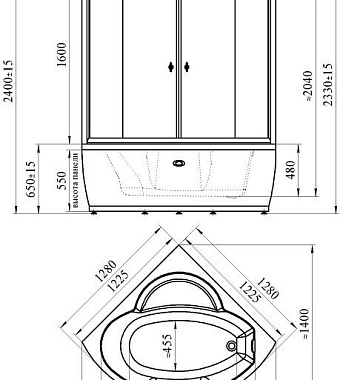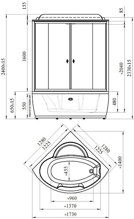 Оснащение (Кабины и боксы) Верхний душ~гидромассаж~парогенератор