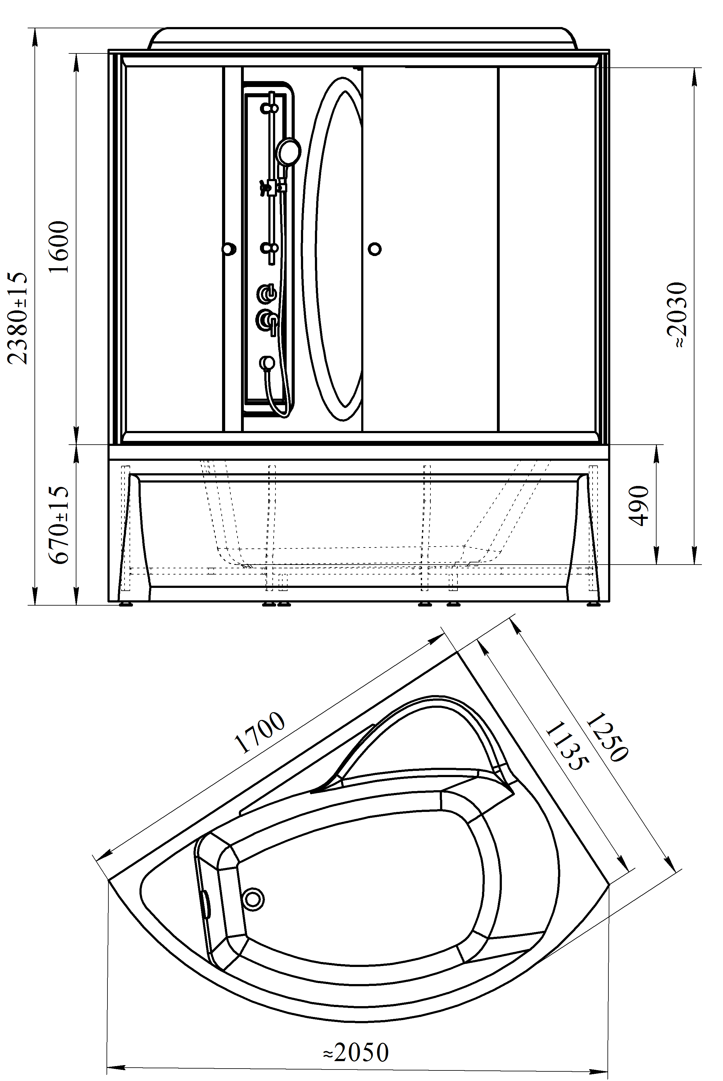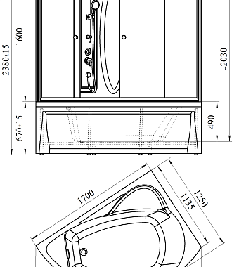 Оснащение (Кабины и боксы) Верхний душ~гидромассаж~парогенератор