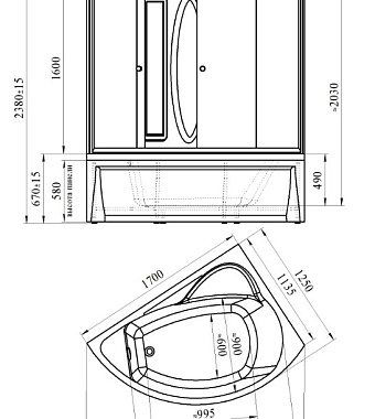 Душевая кабина RADOMIR ВИРСАВИЯ 1-04-6-1-0-0671 125х170х238см стекло матовое - купить в интернет-магазине Орегон с доставкой в регионы Крыма.