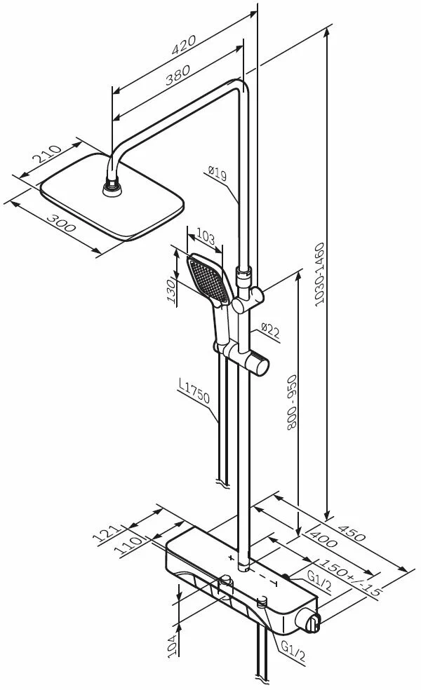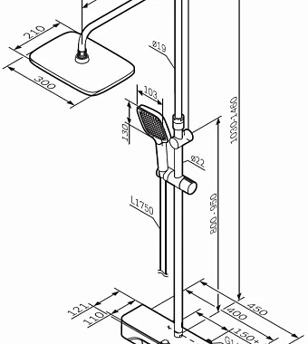 Оснащение (Душ) Верхний душ~Держатель~Переключатель~Ручной душ