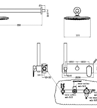 Оснащение (Душ) Верхний душ~Ручной душ~Смеситель
