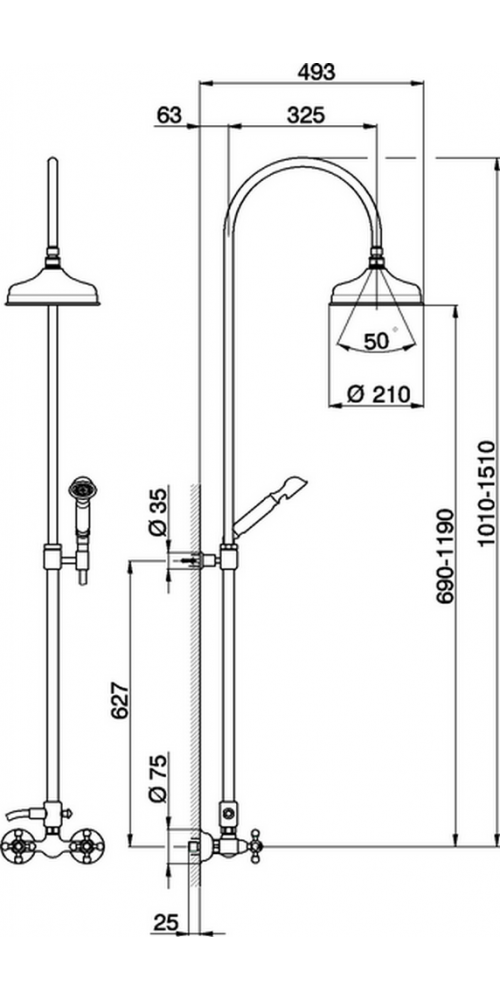 Оснащение (Душ) Верхний душ~Ручной душ~Смеситель
