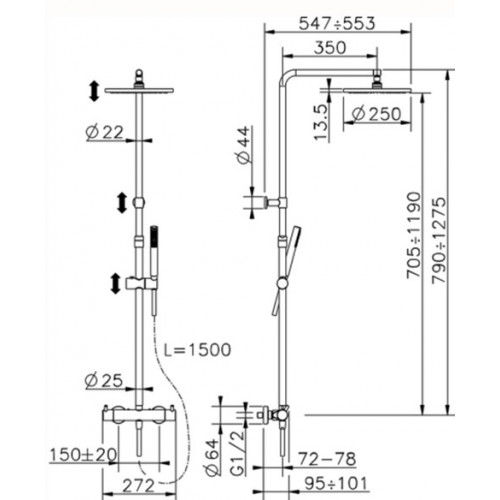 Душевая система Cisal Less New LNC8402D21 хром - купить в интернет-магазине Орегон с доставкой в регионы Крыма.