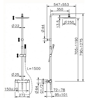 Оснащение (Душ) Верхний душ~Ручной душ~Термостат