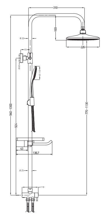 Душевая система ESKO ST1300 хром - купить в интернет-магазине Орегон с доставкой в регионы Крыма.