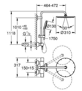 Душевая система GROHE Rainshower SmartActive 310 27966001 хром - купить в интернет-магазине Орегон с доставкой в регионы Крыма.