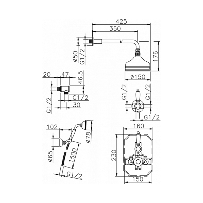 Душевая система Huber Victorian 913.VT02H.AC хром - купить в интернет-магазине Орегон с доставкой в регионы Крыма.