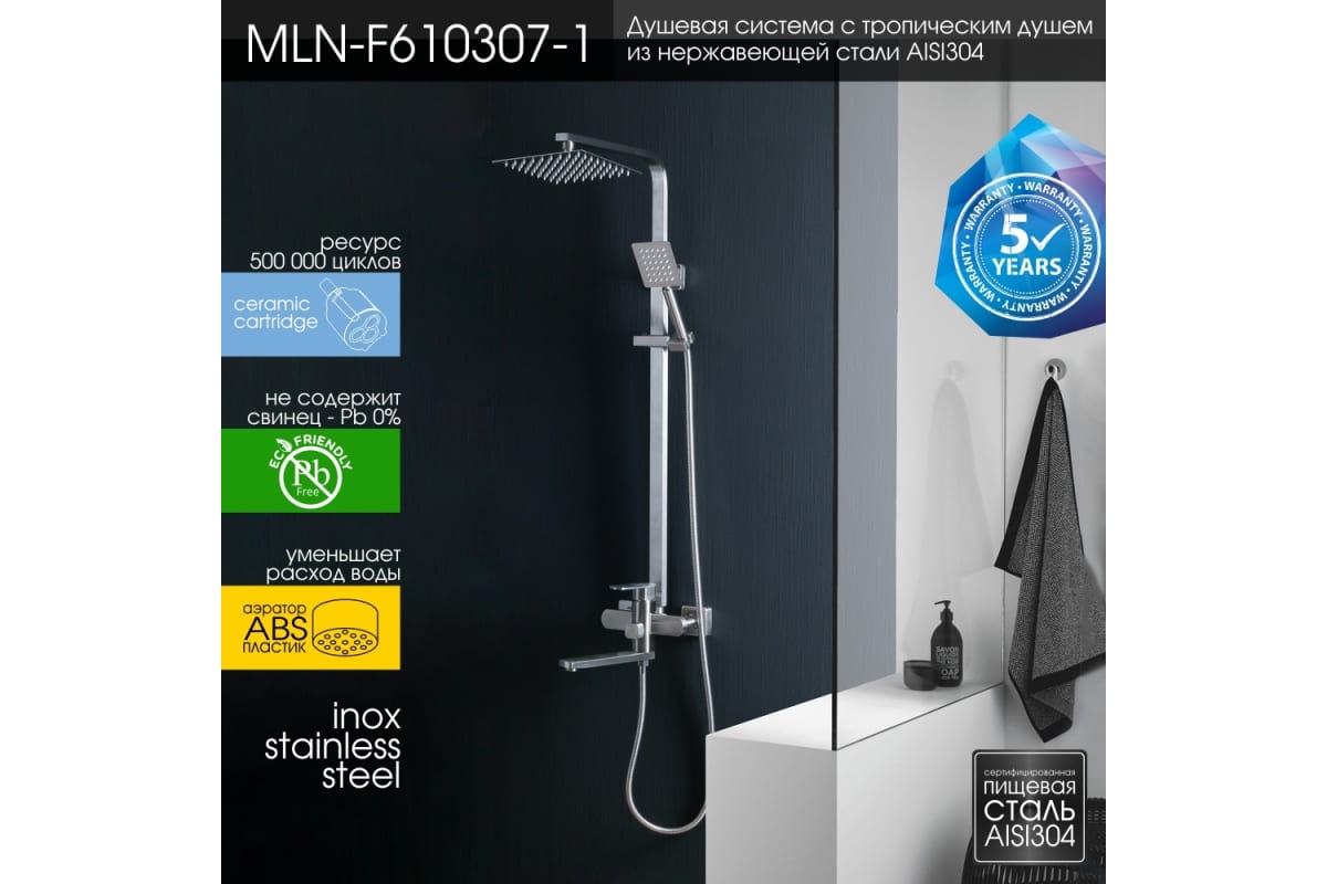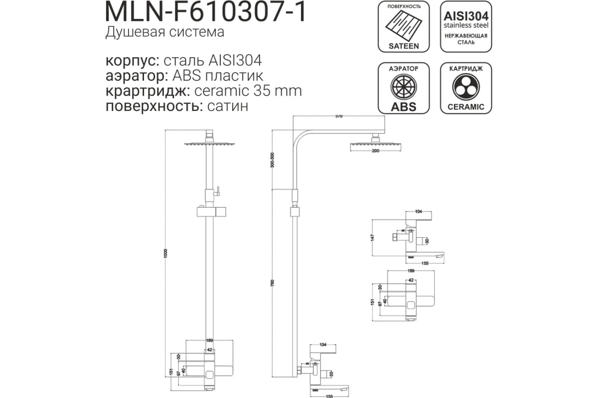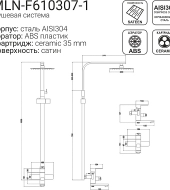 Душевая система MELANA Stello 610307-1 сатин - купить в интернет-магазине Орегон с доставкой в регионы Крыма.