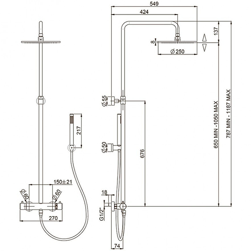 Душевая система Paini Cox 78PZ689THTT чёрный (матовый) - купить в интернет-магазине Орегон с доставкой в регионы Крыма.