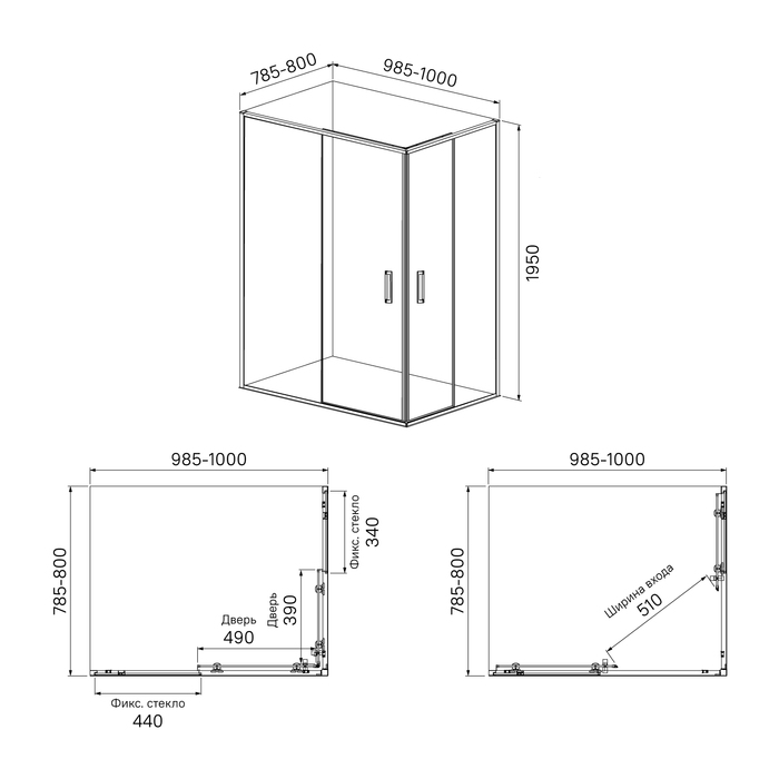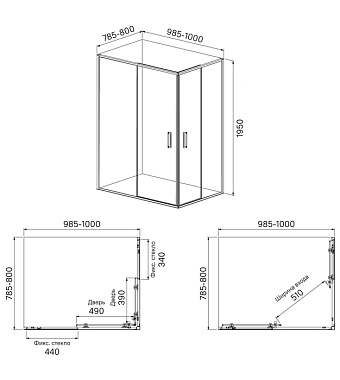 Душевое ограждение, прямоуг., глянцевый ал. проф., 100х80х195, Zodiac, IDDIS, ZOD6CS8i23 - купить в интернет-магазине Орегон с доставкой в регионы Крыма.