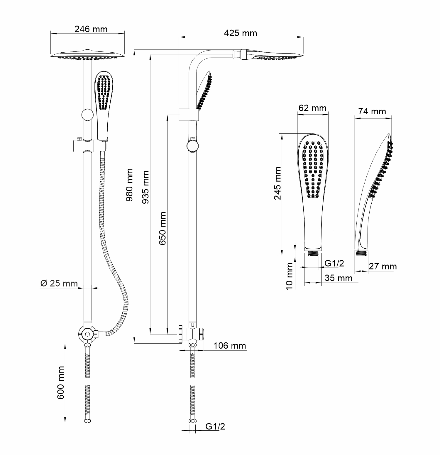 Длина шланга, см 150