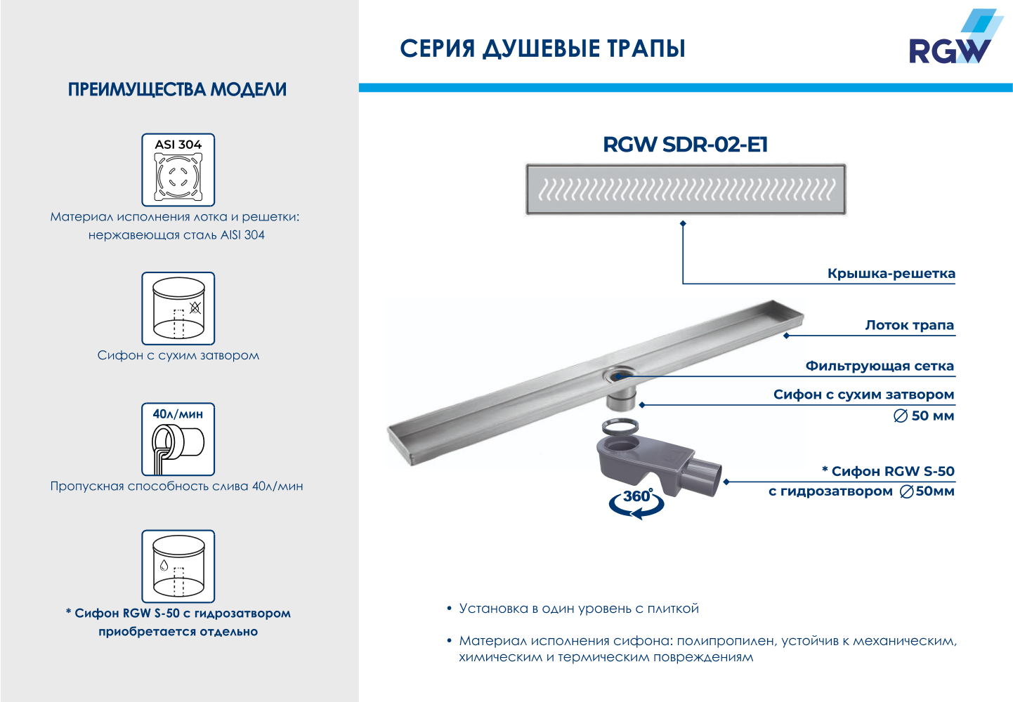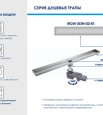 Душевой лоток RGW 21210260-01 SDR-02-E1 60х9см горизонтальный сток с решёткой - купить в интернет-магазине Орегон с доставкой в регионы Крыма.