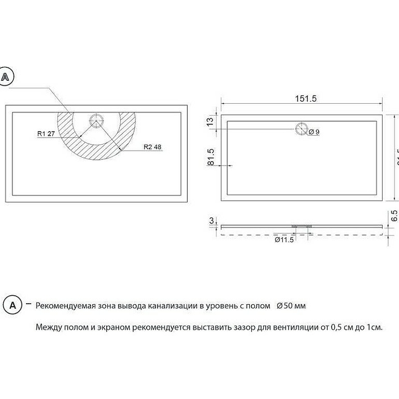 Душевой поддон AQUANET Alfa/Delta 172469 81,5х151,5см - купить в интернет-магазине Орегон с доставкой в регионы Крыма.