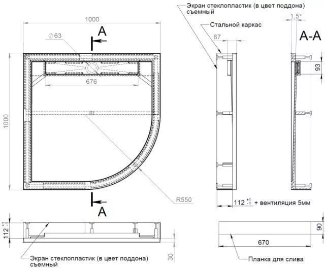 Вид поддона низкий