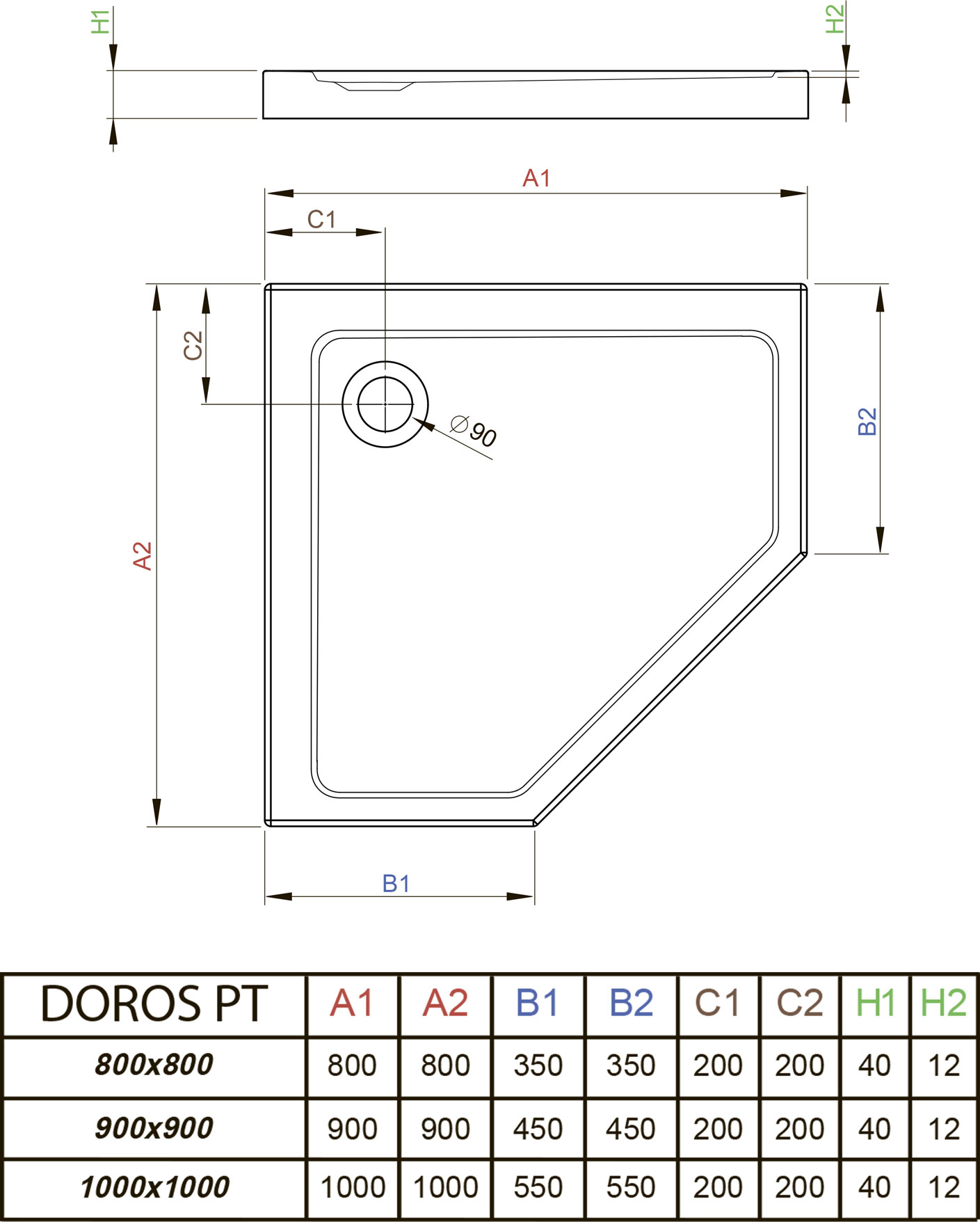 Душевой поддон RADAWAY Doros PT 90х90см - купить в интернет-магазине Орегон с доставкой в регионы Крыма.