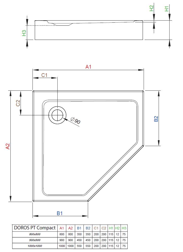 Душевой поддон RADAWAY Doros PT Compact 90х90см