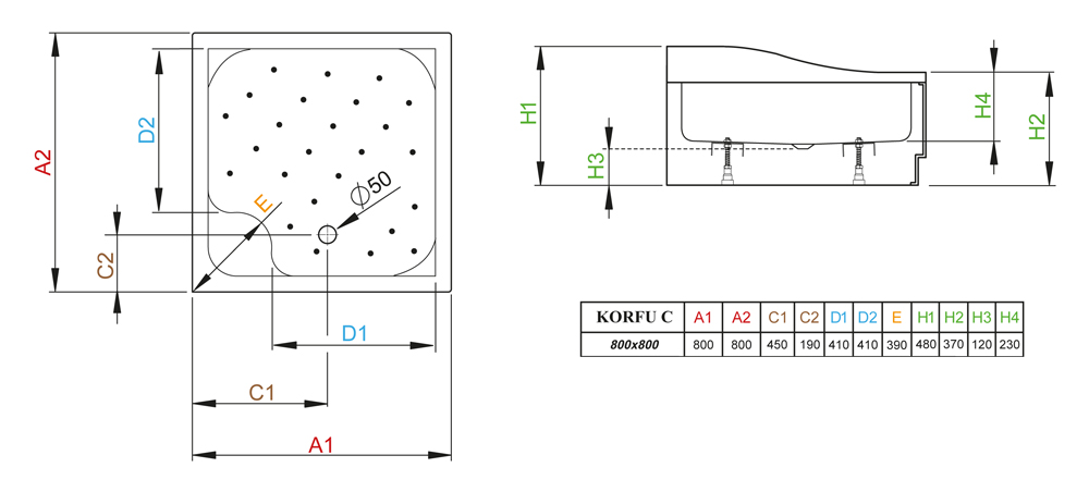 Душевой поддон RADAWAY Korfu 4C88400-03 80х80см