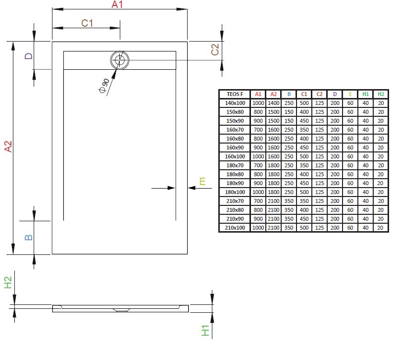 Душевой поддон RADAWAY Teos HTF18090-04 180х90см