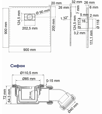 Душевой поддон WASSERKRAFT Main 41T03 90х90см