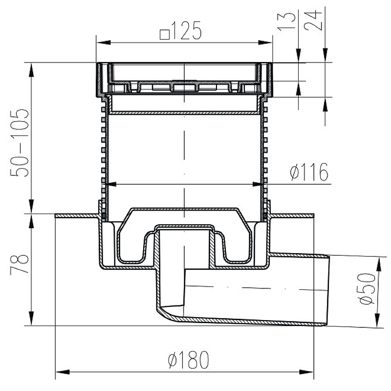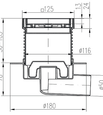 Душевой трап Paini C425XL 12,5х12,5см горизонтальный сток
