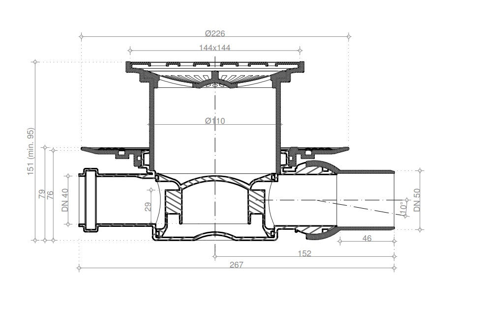 Душевой трап Pestan 13000003 15х15см горизонтальный сток
