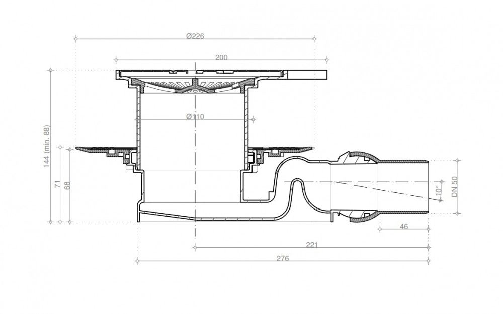 Душевой трап Pestan 13000014 20х20см горизонтальный сток