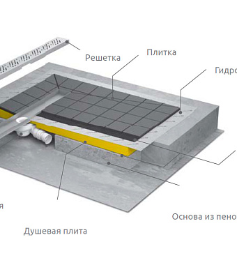 Оснащение (трапы и каналы) с решёткой под плитку
