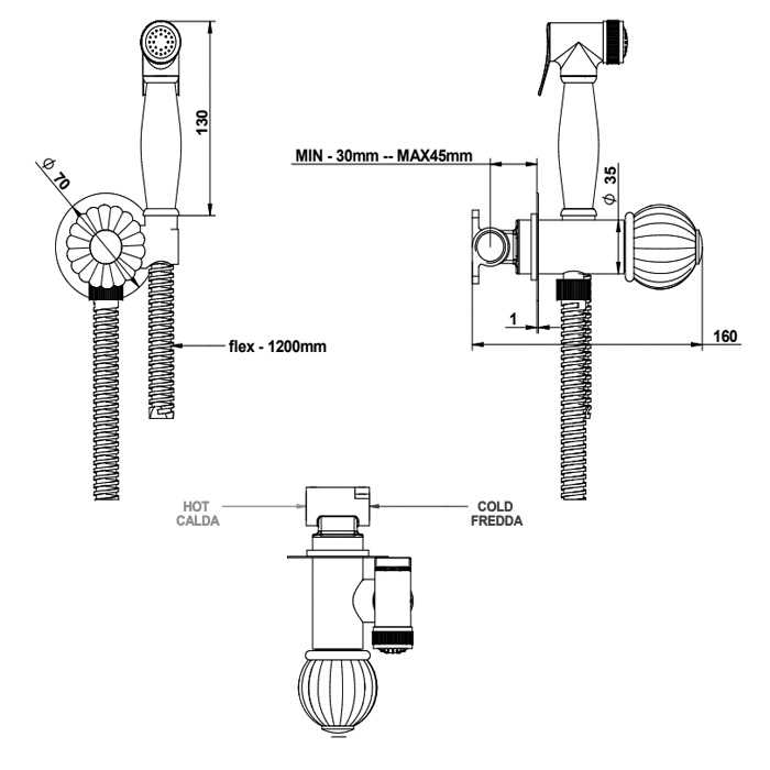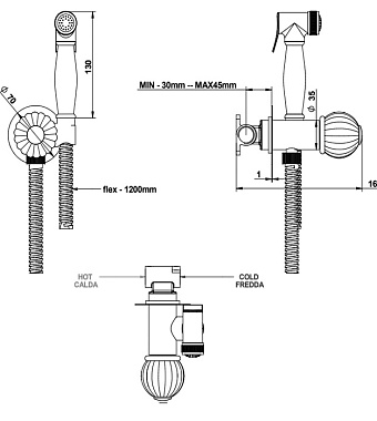 Гигиенический душ Bongio Rivoli 05916OR00 золото - купить в интернет-магазине Орегон с доставкой в регионы Крыма.