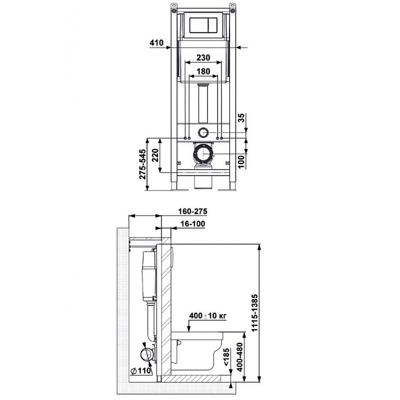 Режим слива воды Определяется механизмом системы инсталляции