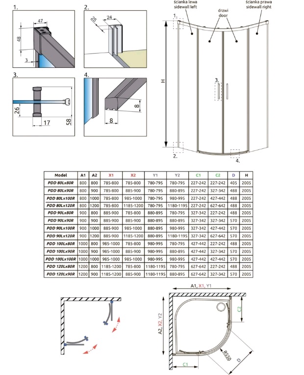 «Комплект боковых стенок для душевого угла RADAWAY Idea Black 387157-54-01 200,5х90см стекло прозрачное» в Ялте и Крыму
