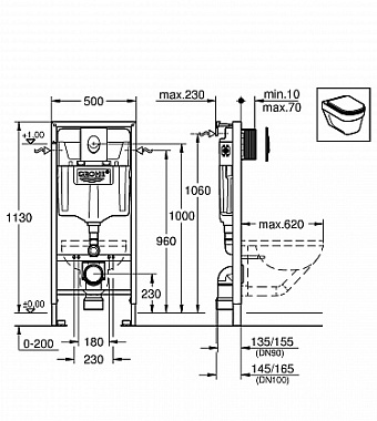 Комплект для установки подвесного унитаза GROHE Rapid SL 38721001 с панелью смыва хром