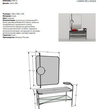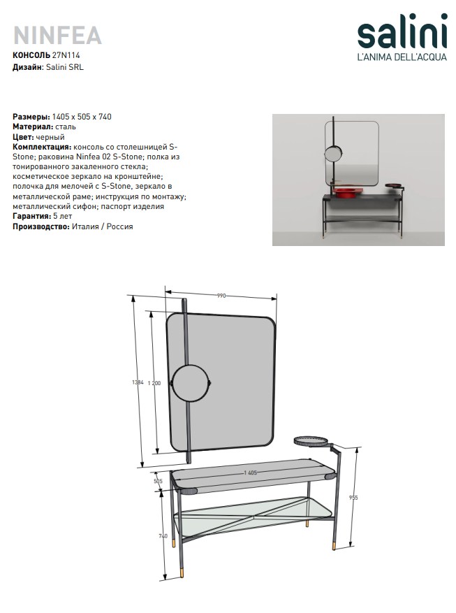 Консоль под раковину SALINI NINFEA 27N114 чёрный - купить в интернет-магазине Орегон с доставкой в регионы Крыма.