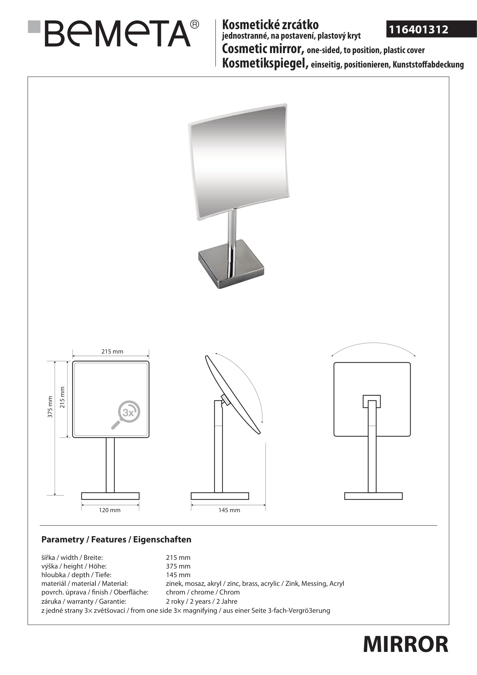 Косметическое зеркало станет незаменимым помощником для поддержания красоты и повседневного ухода за лицом. Женщины используют его при нанесении макияжа и создании причёски, а мужщины для аккуратного и тщательного бритья. Косметическое зеркало BEMETA - это стильная и современная модель размером 37,5х21,5см без подсветки. Материал корпуса: Зеркало обеспечивает долговечность использования в условиях повышенной влажности и высоких температур. Страна производителя: Чехия. Вы можете купить Косметическое зеркало BEMETA 116401312 37,5х21,5см без подсветки в интернет-магазине "ОРЕГОН" с бесплатной доставкой по всему Крыму или забрать товар самостоятельно в любом из наших магазинов в Ялте, Севастополе и Симферополе.