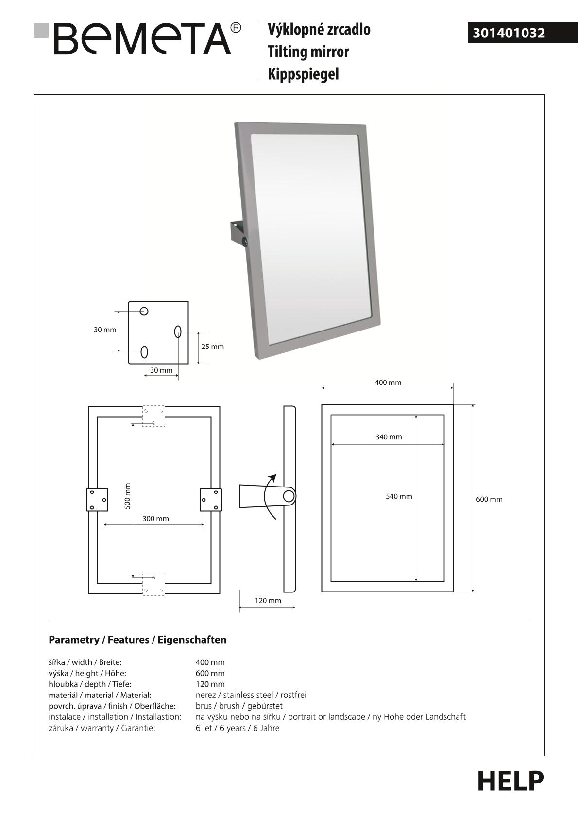 Косметическое зеркало BEMETA HELP program 301401032 60х40см без подсветки - купить в интернет-магазине Орегон с доставкой в регионы Крыма.