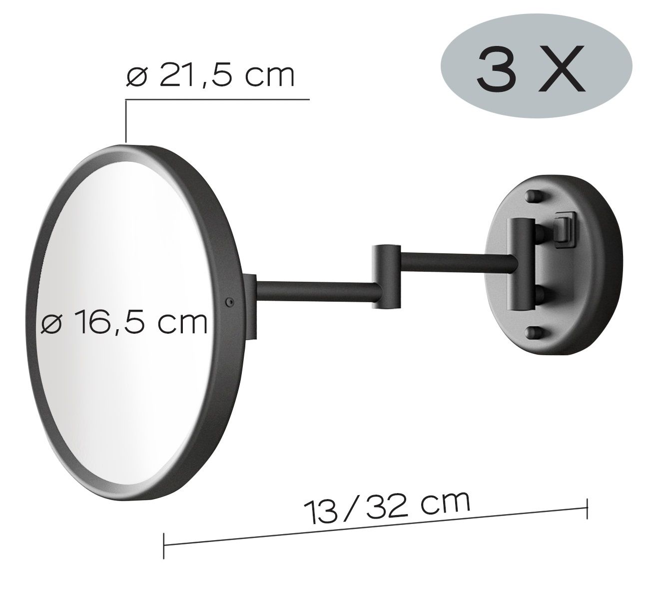 Косметическое зеркало Gedy Sarah 2100(14) 21,5х21,5см чёрный матовый с подсветкой