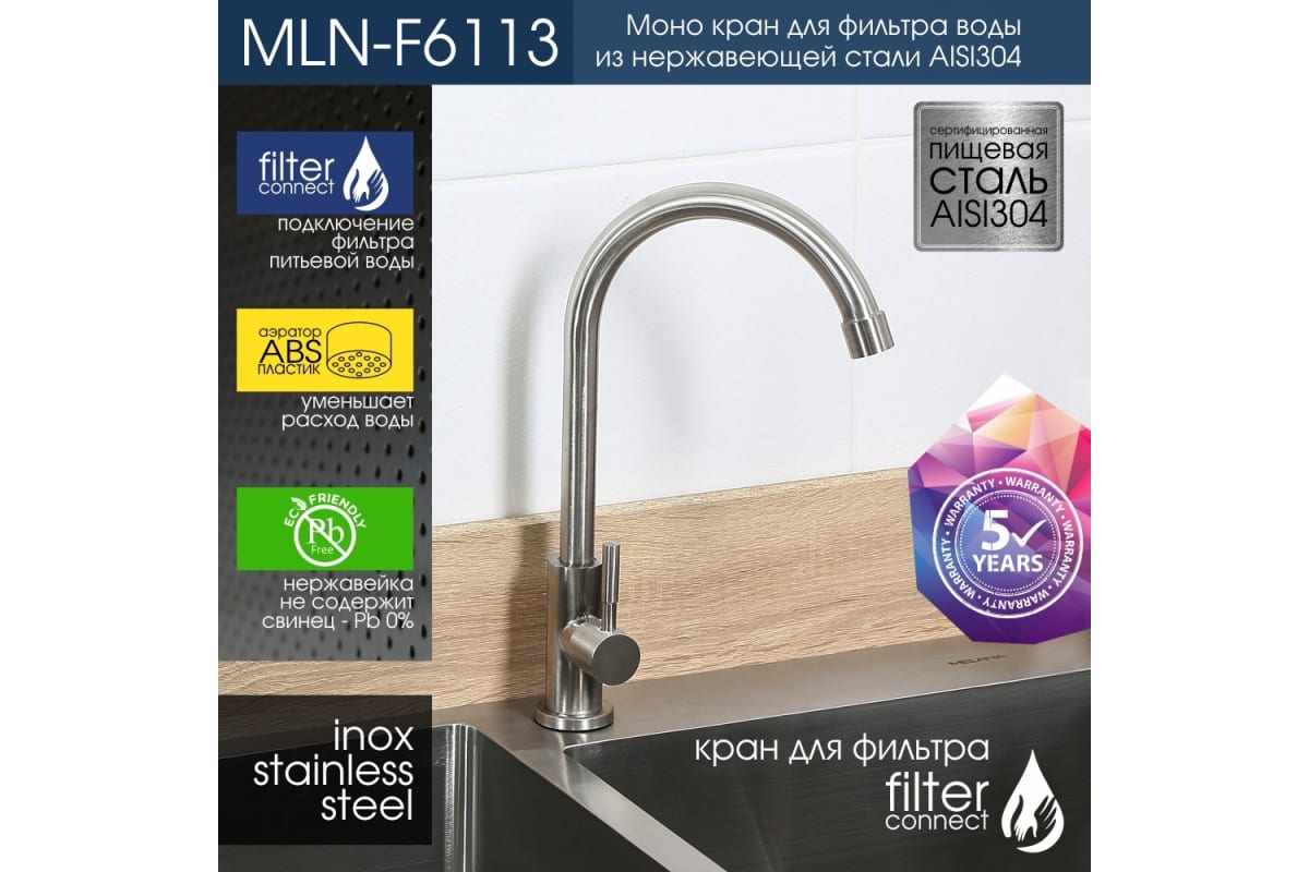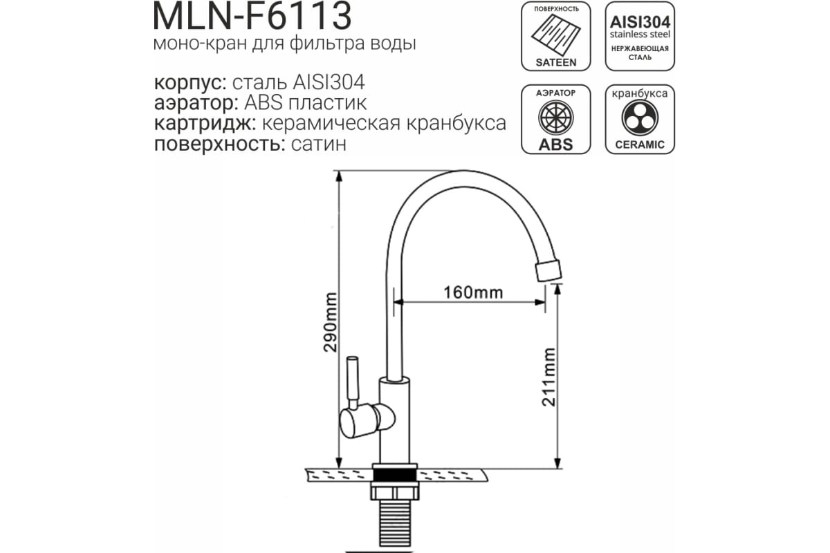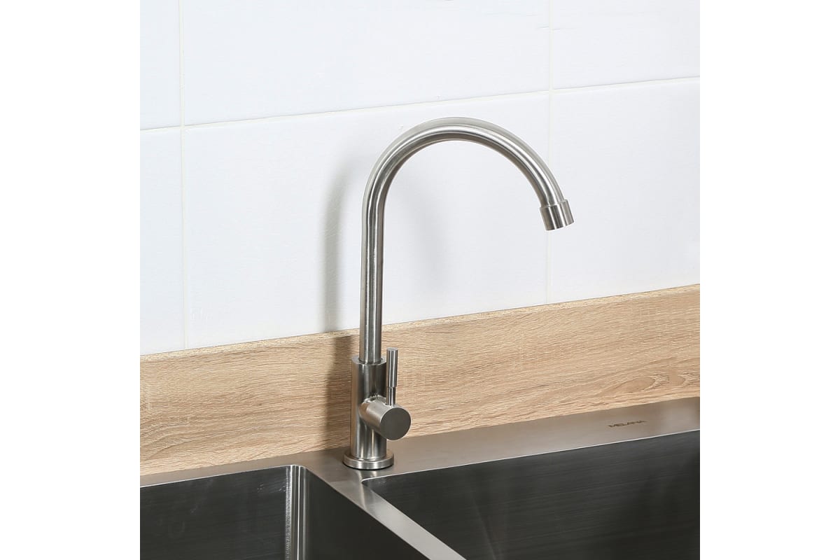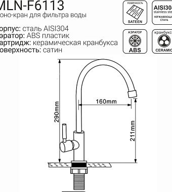 Водоразборный кран (МОНО) д/кухни MELANA-F6113 нерж.сталь, однорычажный, сатин