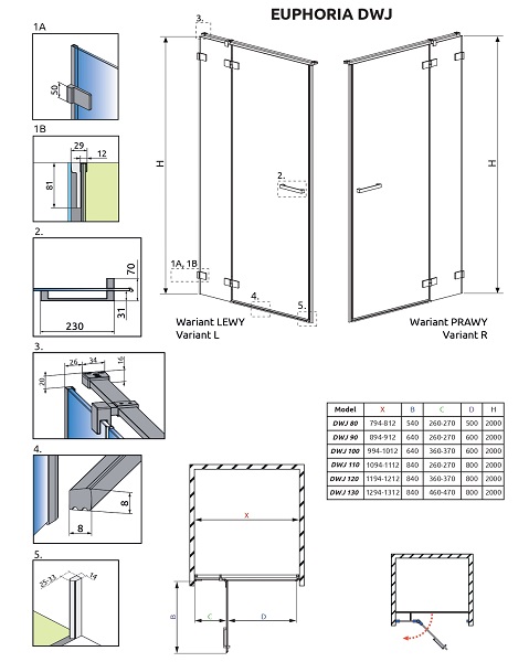 Левая стенка душевого угла RADAWAY EUPHORIA 383214-01L 200х34,3см стекло прозрачное - купить в интернет-магазине Орегон с доставкой в регионы Крыма.