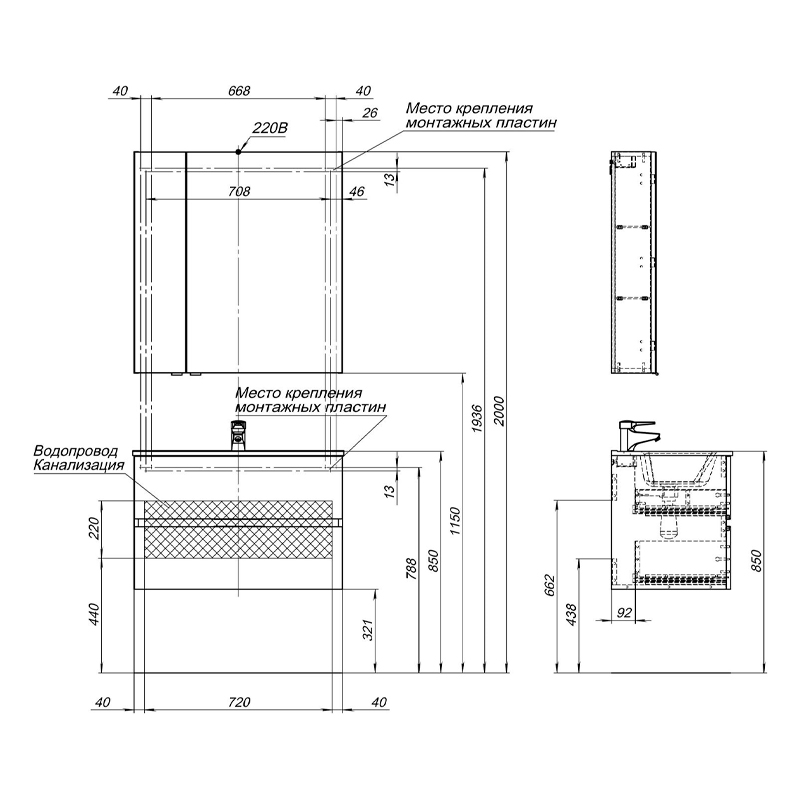 Мебель для ванной AQUANET Алвита New 274204 серый - купить в интернет-магазине Орегон с доставкой в регионы Крыма.