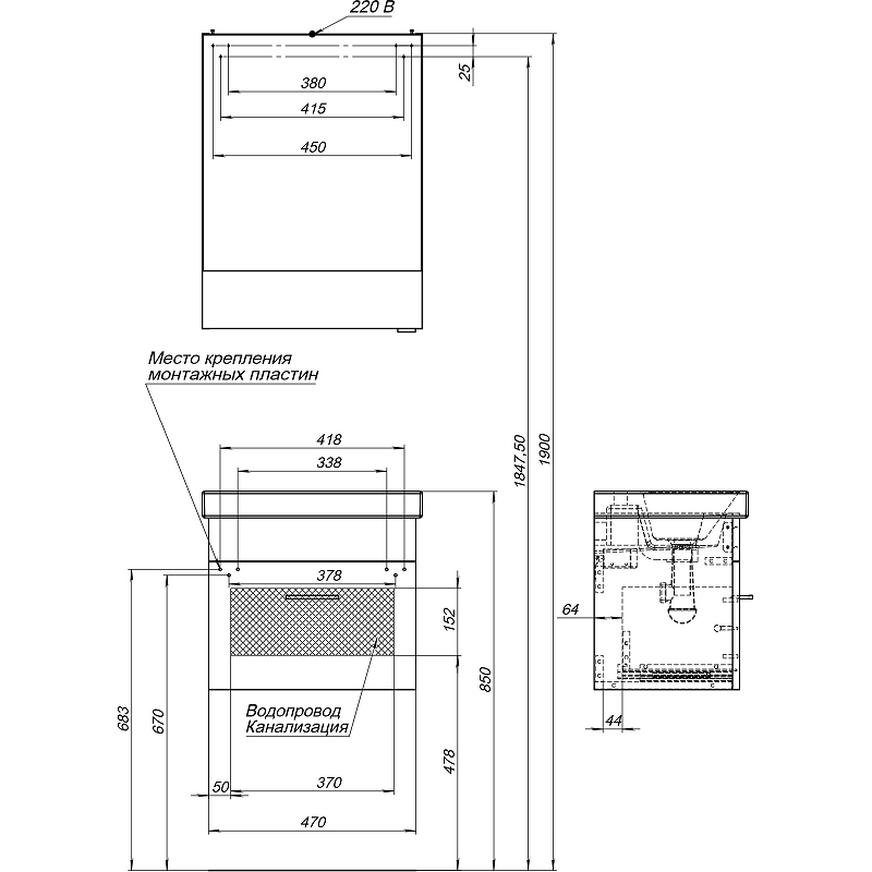 Монтаж На пол~Подвесной