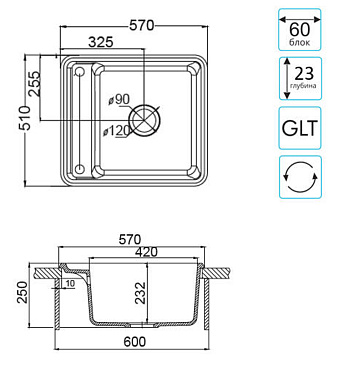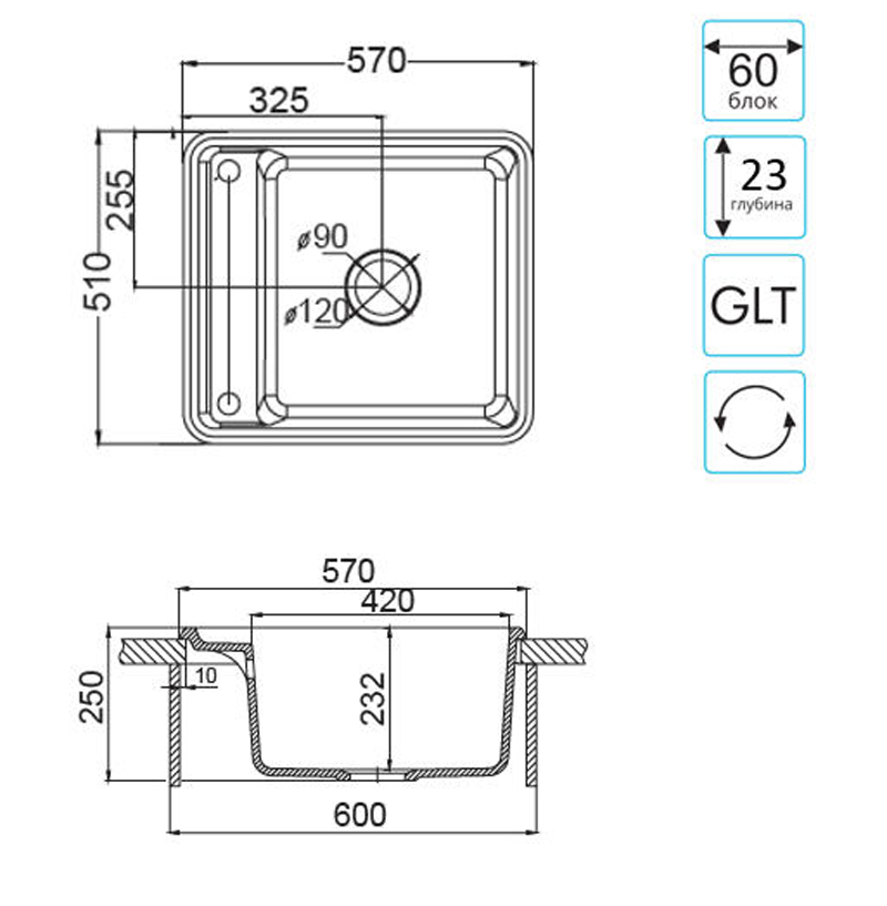 Тип раковины встраиваемая сверху~накладная