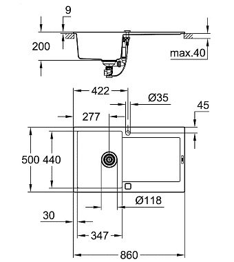Мойка кухонная GROHE K500 31644AT0 86х50см серый - купить в интернет-магазине Орегон с доставкой в регионы Крыма.
