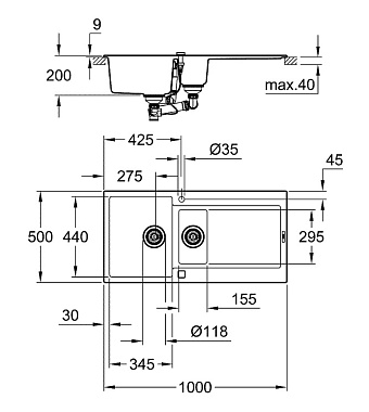 Мойка кухонная GROHE K500 31646AT0 100х50см серый