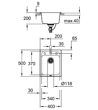 Мойка кухонная GROHE K700 31650AT0 40х50см серый гранит - купить в интернет-магазине Орегон с доставкой в регионы Крыма.