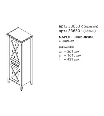 Пенал напольный CAPRIGO НАПОЛИ 33650R-B168 43х56,1х161,5см орех - купить в интернет-магазине Орегон с доставкой в регионы Крыма.