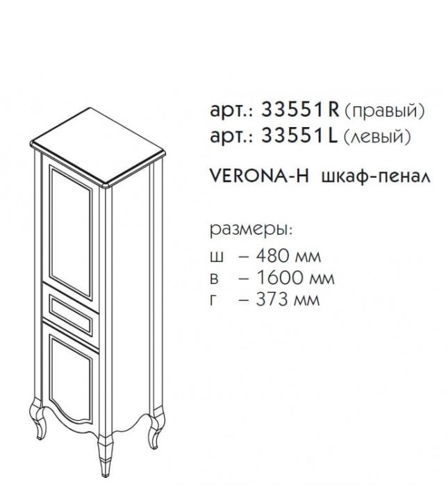 Пенал напольный CAPRIGO VERONA 33551L-TP817 37х48х160,1см синий - купить в интернет-магазине Орегон с доставкой в регионы Крыма.
