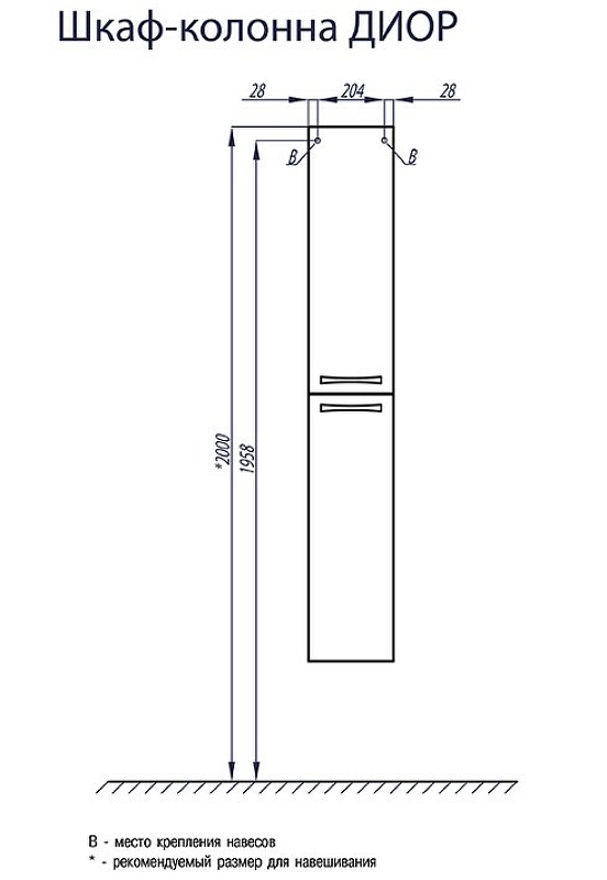 Пенал подвесной Акватон Диор 1A110803DR010 25х26,2х163,3см белый - купить в интернет-магазине Орегон с доставкой в регионы Крыма.