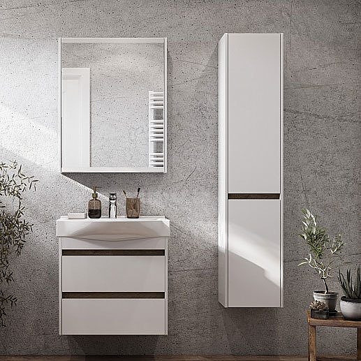 Пенал подвесной Акватон Нортон 1A249403NT01R 24х34х160см белый/дуб эндгрейн - купить в интернет-магазине Орегон с доставкой в регионы Крыма.