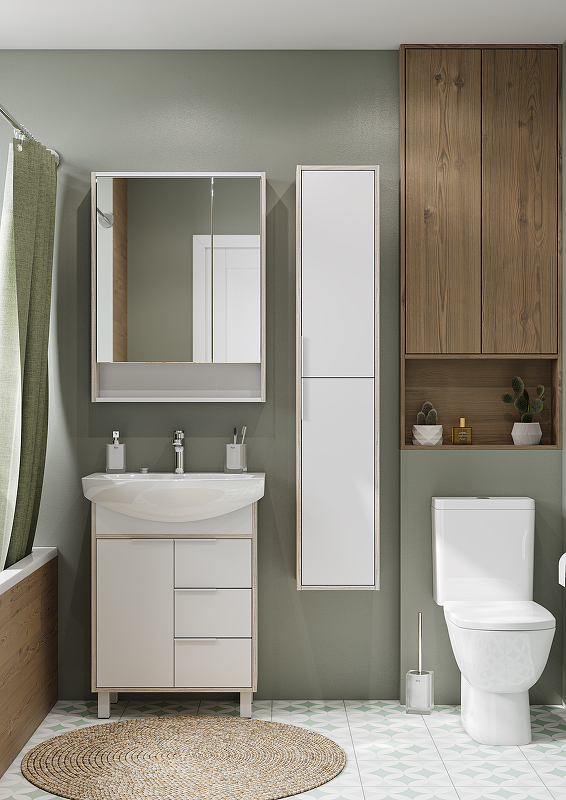 Пенал подвесной Акватон Рико 1A216603RIB90 27х30х154,2см белый/ясень фабрик - купить в интернет-магазине Орегон с доставкой в регионы Крыма.