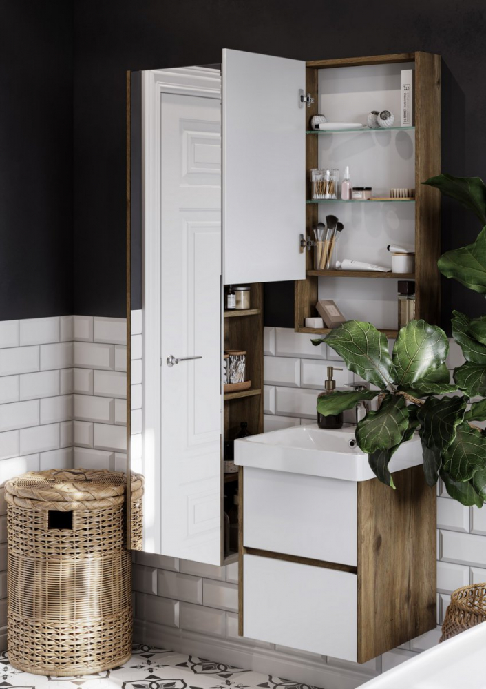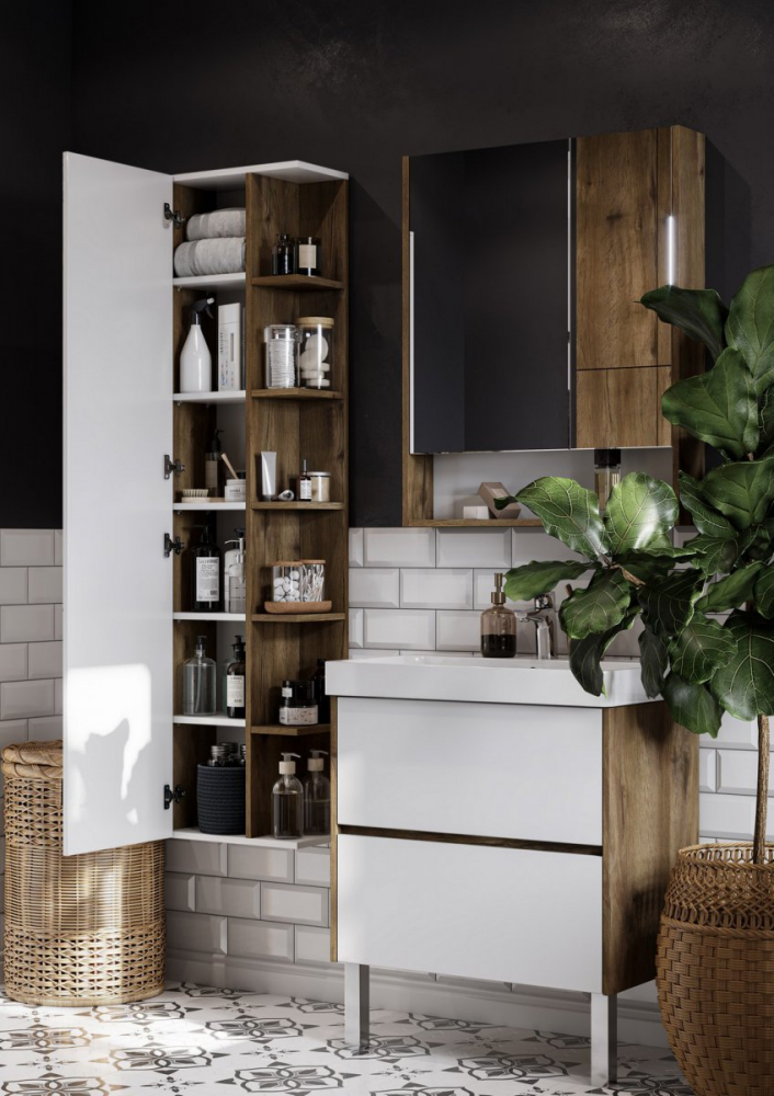 Пенал подвесной Акватон Сканди 1A253403SDZ90 24х40х159см белый/дуб рустикальный - купить в интернет-магазине Орегон с доставкой в регионы Крыма.