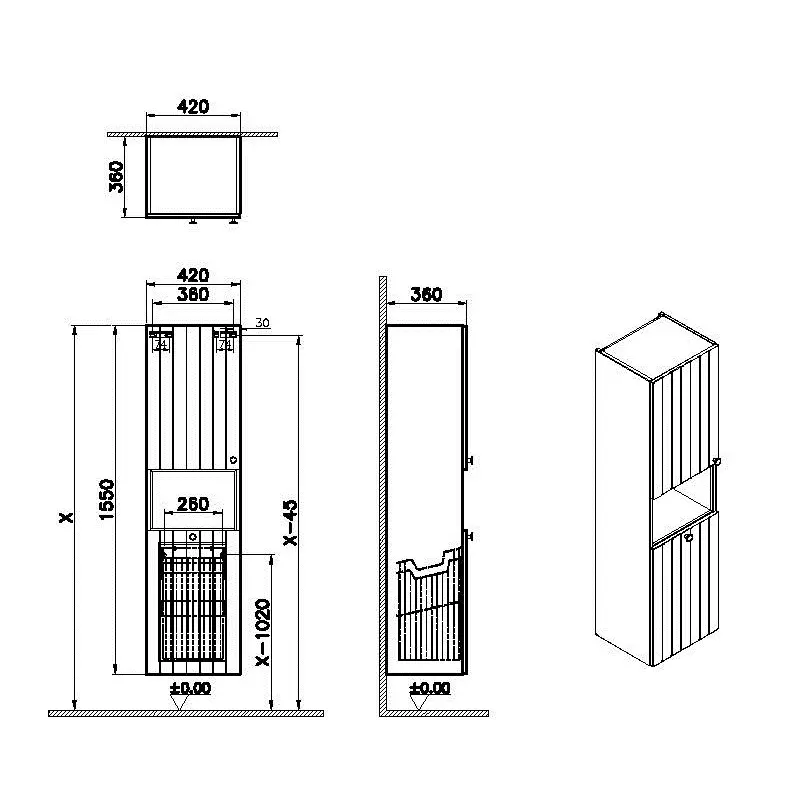Пенал подвесной VITRA Root Groove 69095 36х42х155см серый - купить в интернет-магазине Орегон с доставкой в регионы Крыма.